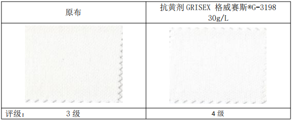 经过抗黄剂 GRISEX 格威赛斯®G-3198 处理后比原布提升 1 级。