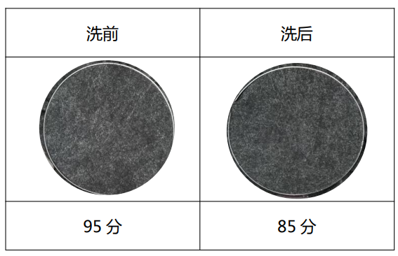 经过处理后的面料,洗前90分,洗5次晾干后85分,手感影响小