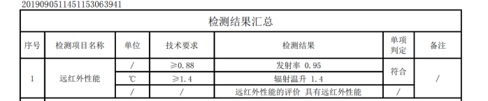 棉拉架要求做到GB/T 30127-2013,远红外发射率大于0.88,辐射温升1.4℃