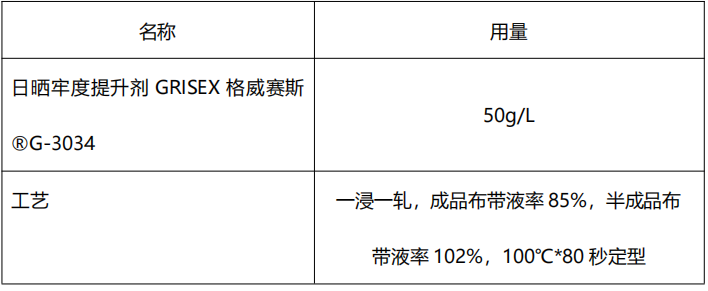 经过日晒牢度提升剂 GRISEX 格威赛斯®G-3034 处理后光牢度能提升 0.5-1 级;