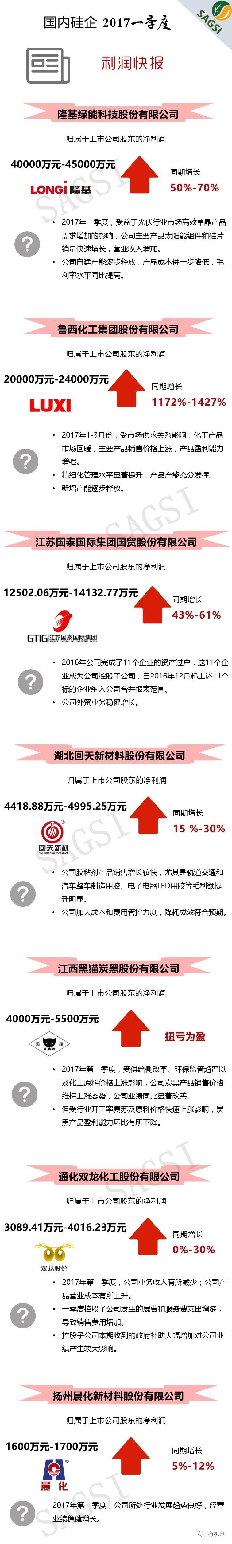【动态】国内硅企2017一季度利润快报