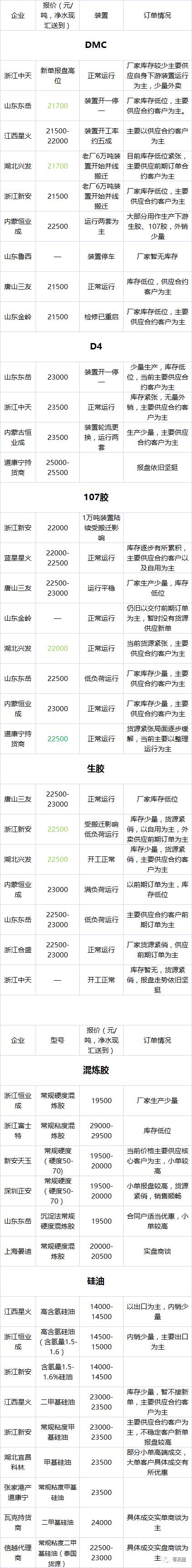 本周部分企业报价