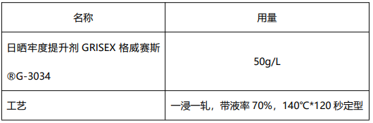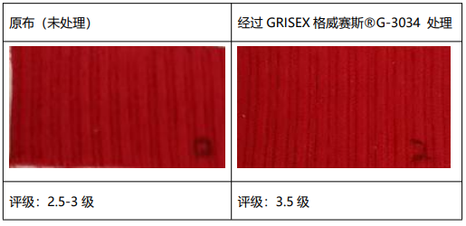 经过日晒牢度提升剂 GRISEX 格威赛斯®G-3034 处理后能提升 0.5-1 级左右;