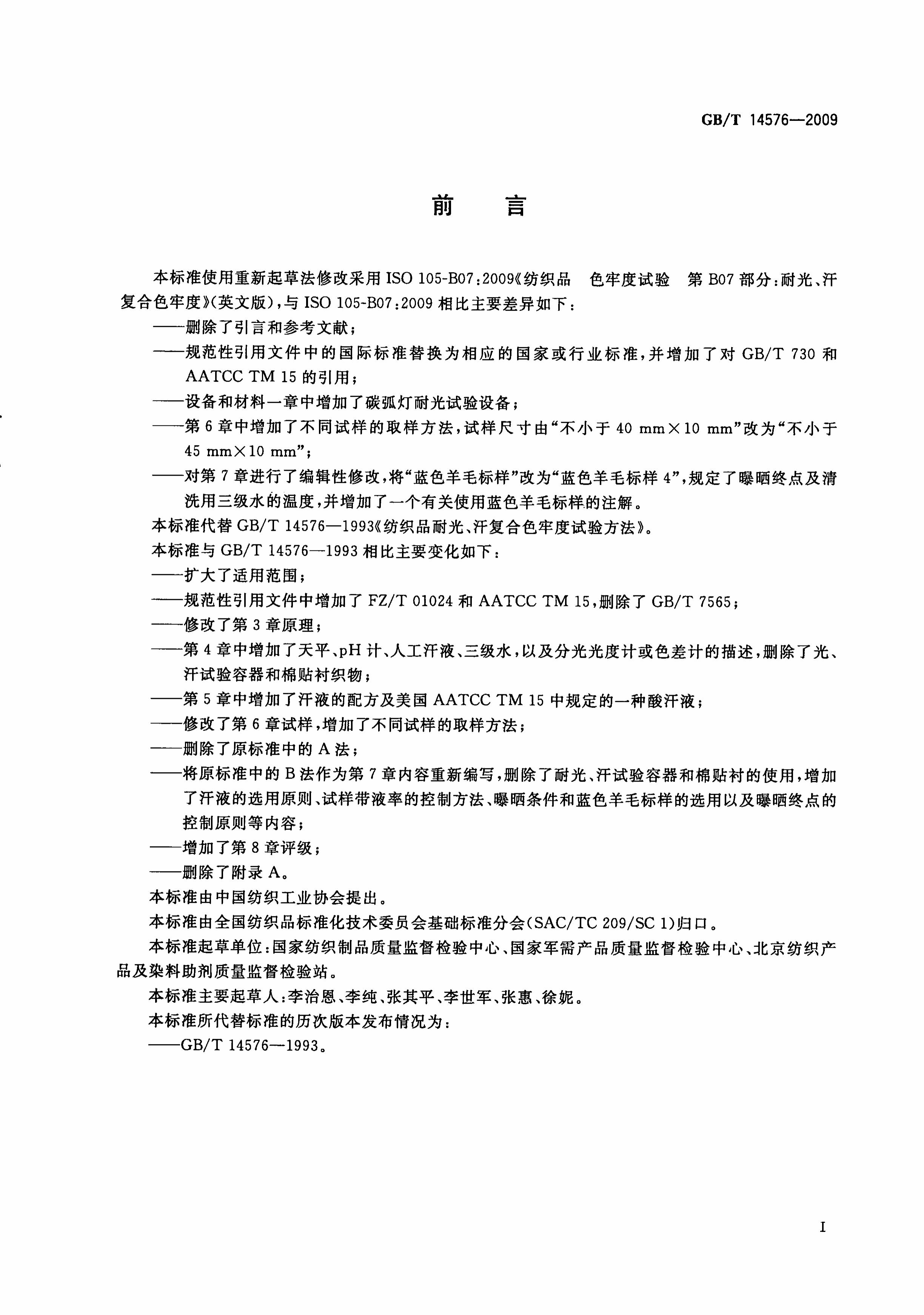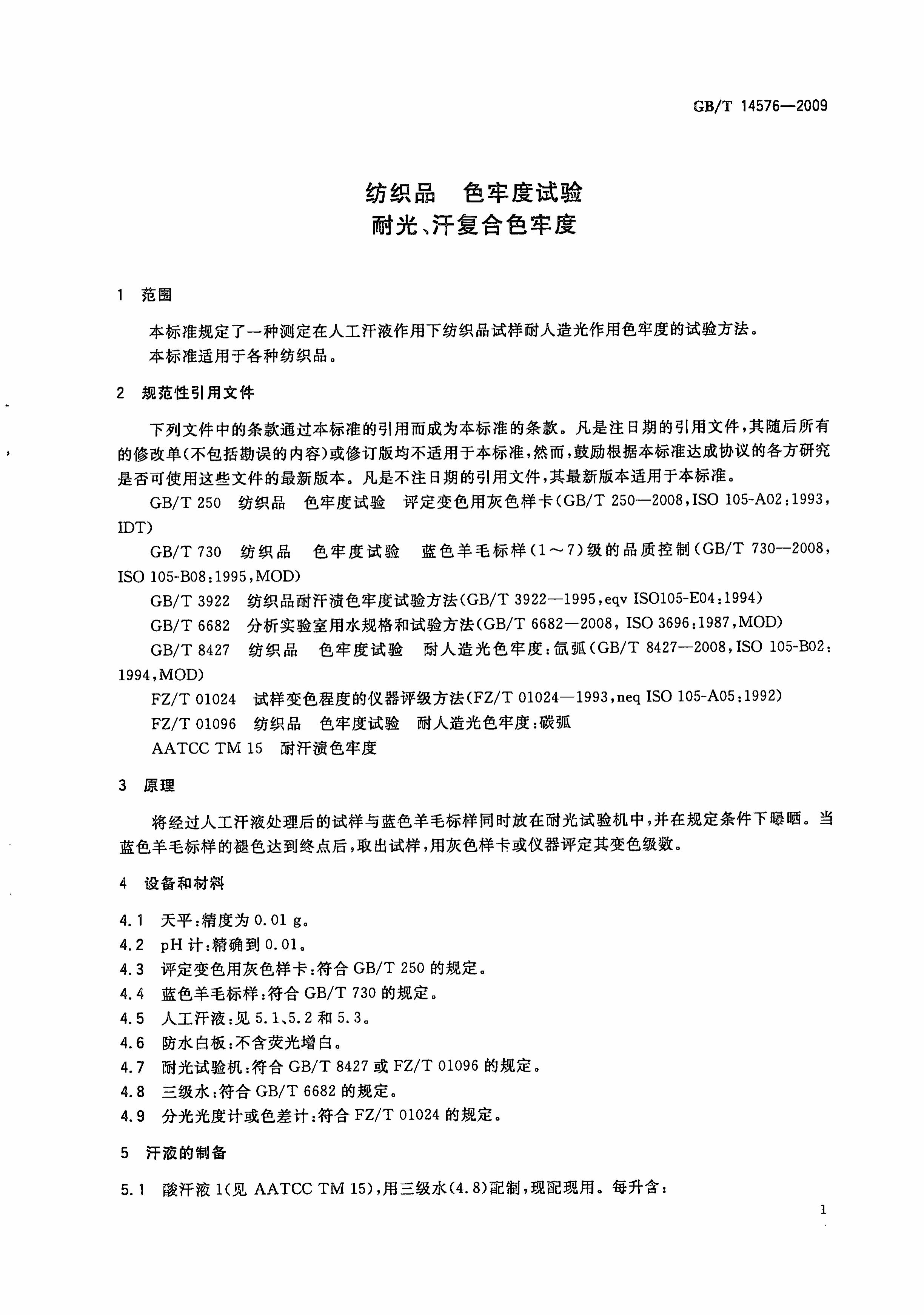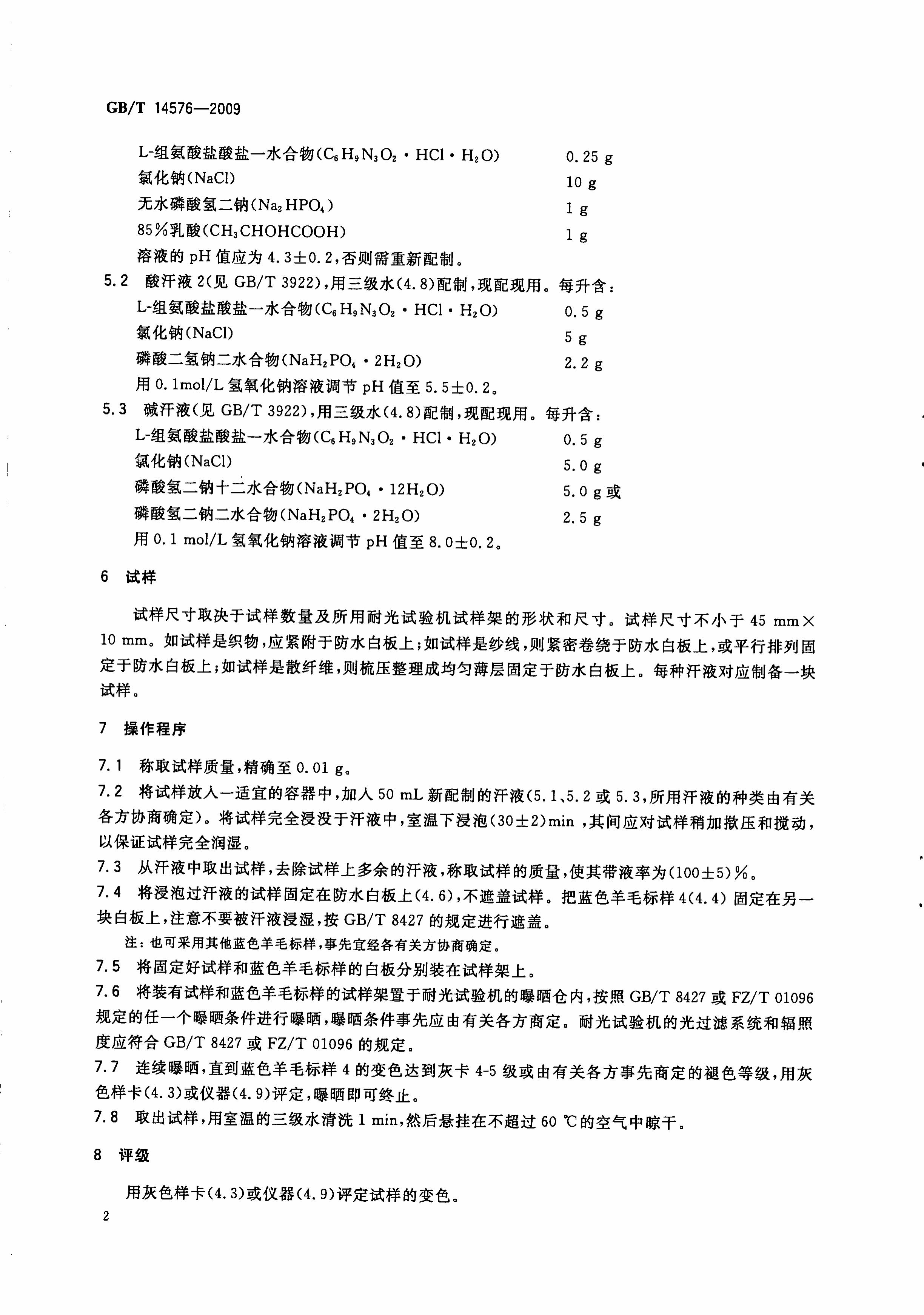 GB/T 14576-2009 纺织品 色牢度试验 耐光、汗复合色牢度