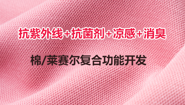 棉天丝面料,开发抗紫外线+抗菌剂+凉感+消臭四种功能,符合国标。