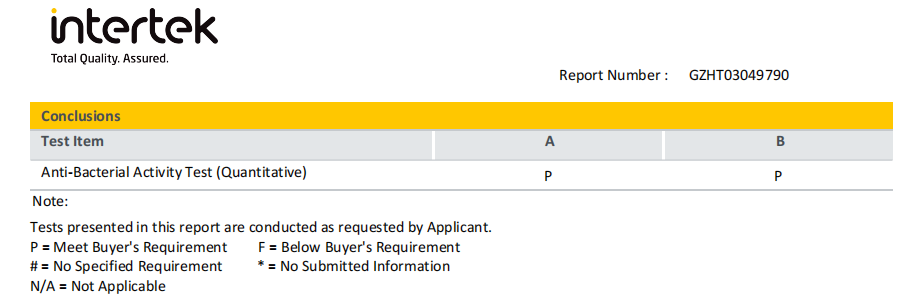 做抗菌剂+手感定制(布面拒水,挺滑),抗菌标准:AATCC TM100-2019标准,洗10次,金黄色葡萄球菌AATCC6538 ≥ 70%, 肺炎克雷伯菌AATCC4352 ≥80%