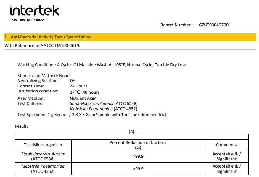 抗菌标准:AATCC TM100-2019标准,洗10次