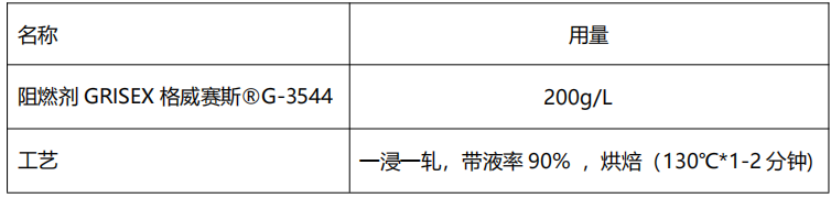 本次测试的核心目标,是验证新型阻燃整理方案能否在满足 ASTM D6545-18C 等国际权威检测标准的同时,兼顾面料的手感、白度及实用性。测试采用了一套高效简洁的工艺:一浸一轧,精准控制带液率,配合适温短时烘焙。该工艺大幅简化了传统阻燃整理的复杂流程,更易于生产管控和成本优化。