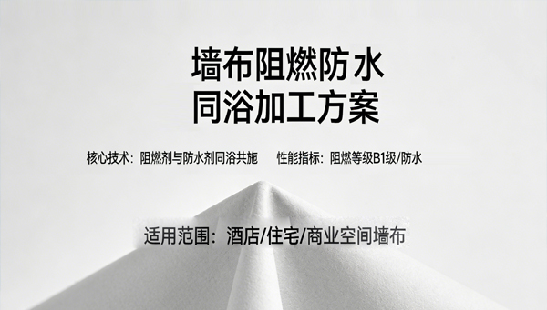 墙布作为室内装饰主流材料,面临双重功能要求:一是必须符合公共与家庭场所的消防安全标准(如国标B1级阻燃);二是需具备防污易清洁特性(防水防泼溅),以应对墙面日常落尘、液体沾染。传统工艺中,阻燃与防水处理需分步进行,导致生产周期长、能耗高、综合成本上升,且多次加工可能影响亚麻等天然纤维的质感。