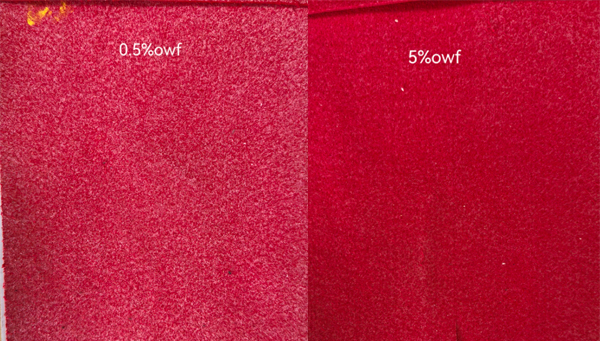 DSN添加量0.5%,颜色基本未变                          DSN添加量5%,颜色鲜艳