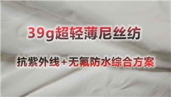 39克20D超轻薄尼丝纺面料,抗紫外线+无氟防水综合解决方案
