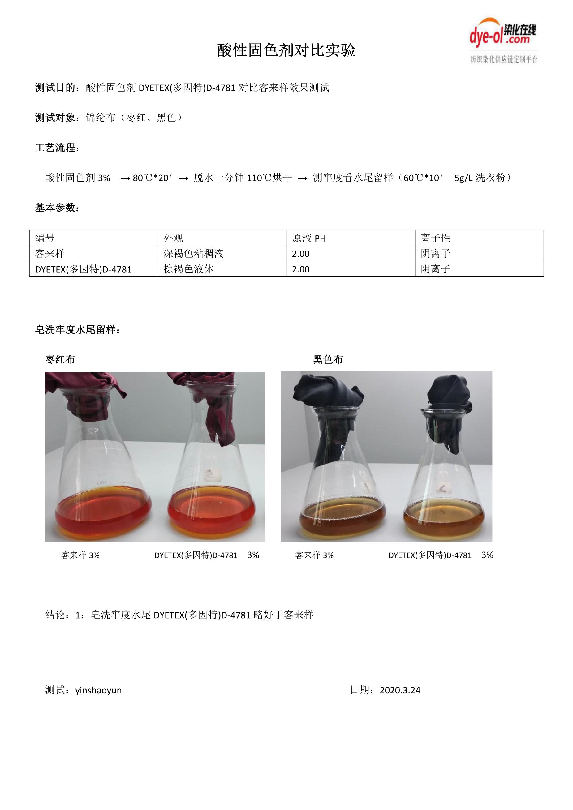 | 测试结论 | 比客户现用固色剂略有提升、性价比高 |