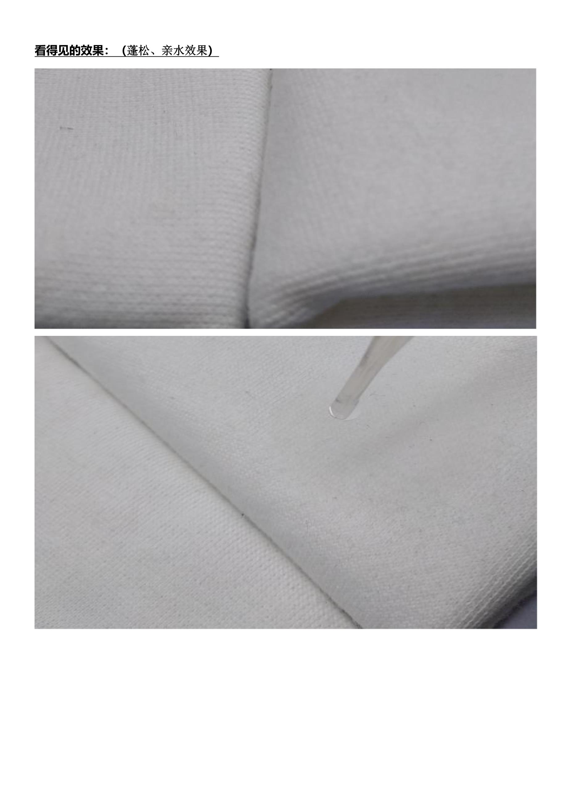 | 测试结论 | 蓬松度、亲水、耐洗效果好 |