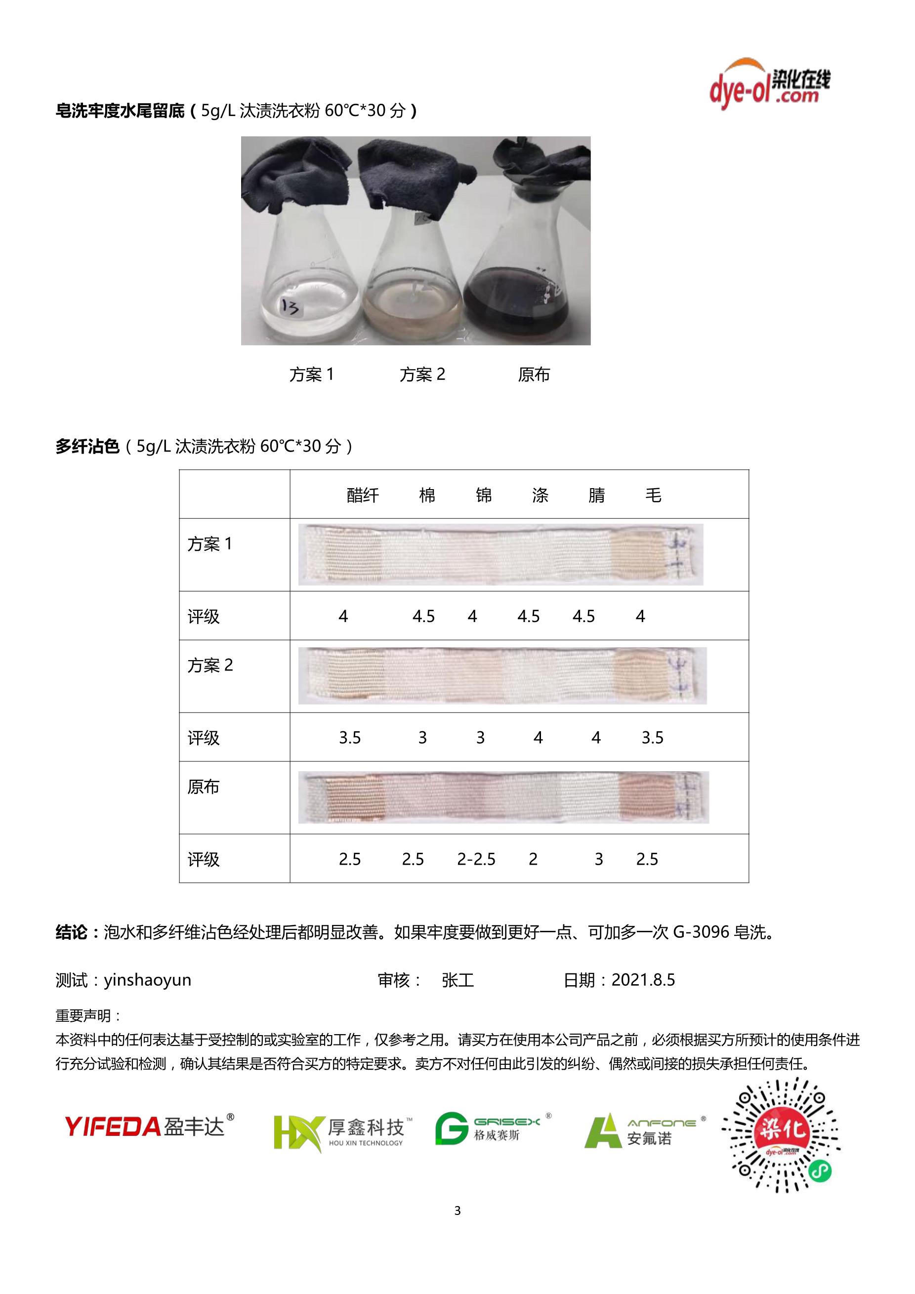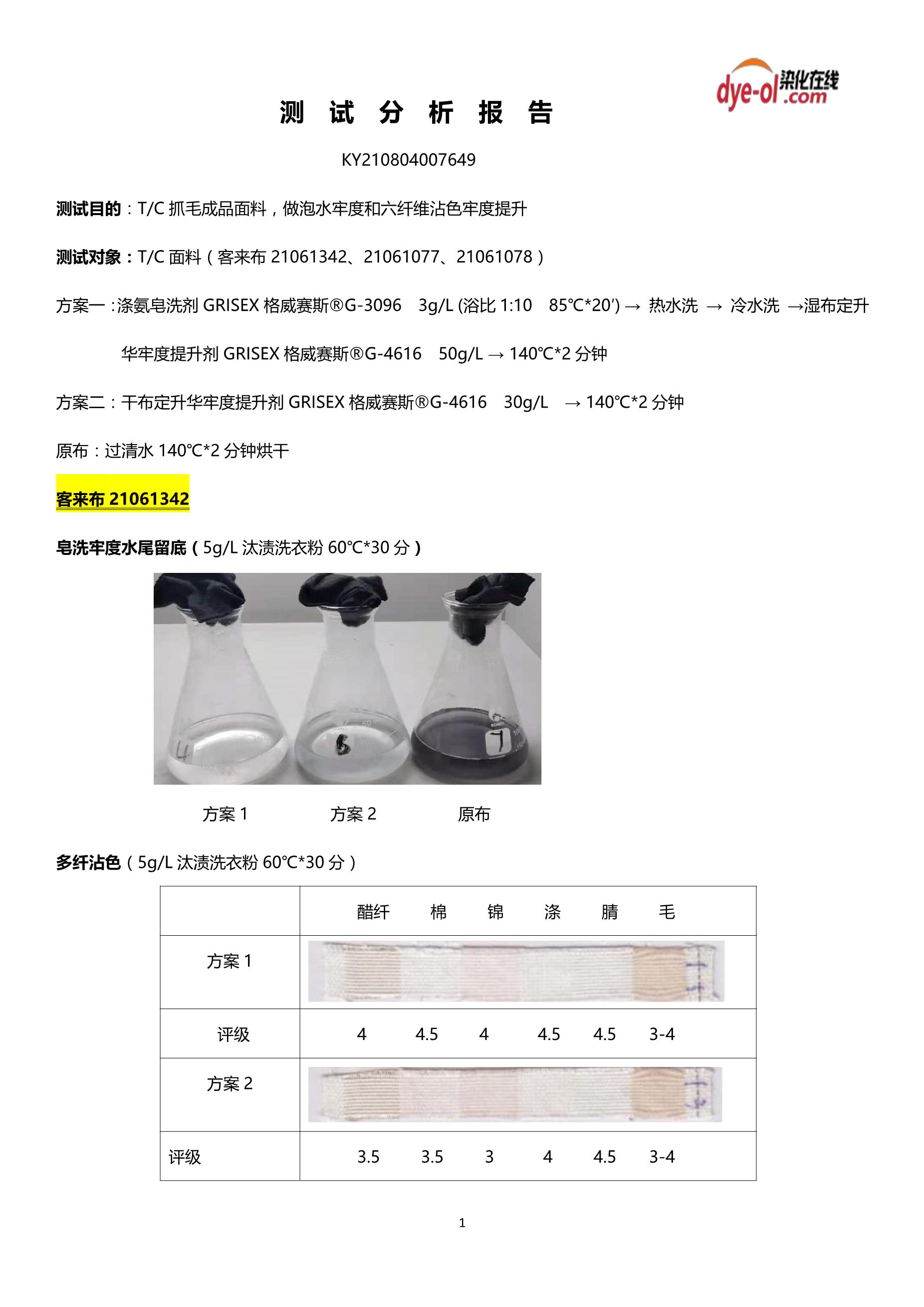 | 测试结论 | 免还原清洗、节能减排、牢度提升明显 |