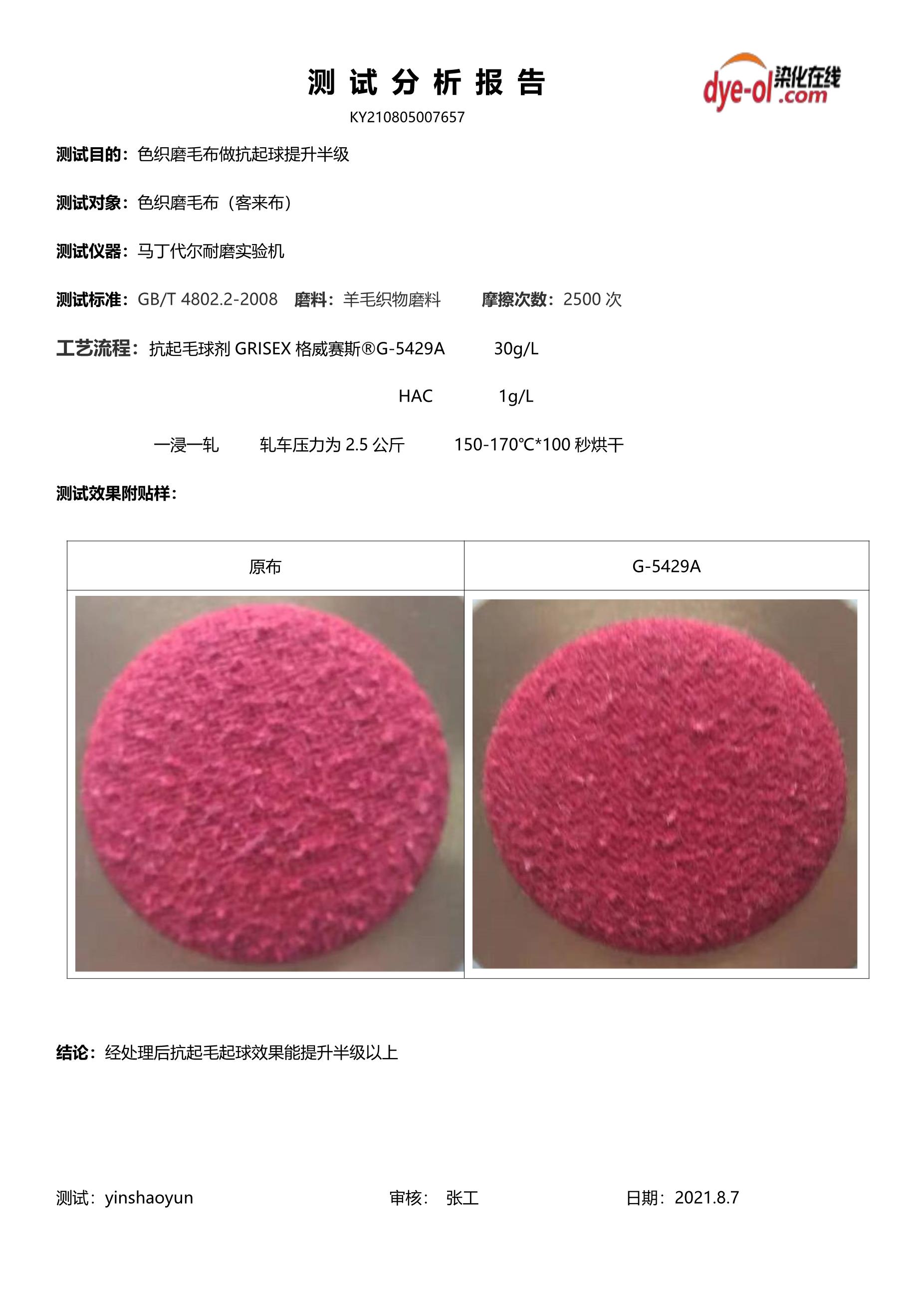 | 测试标准 | 马丁代尔 GB/T 4802.2-2008 |