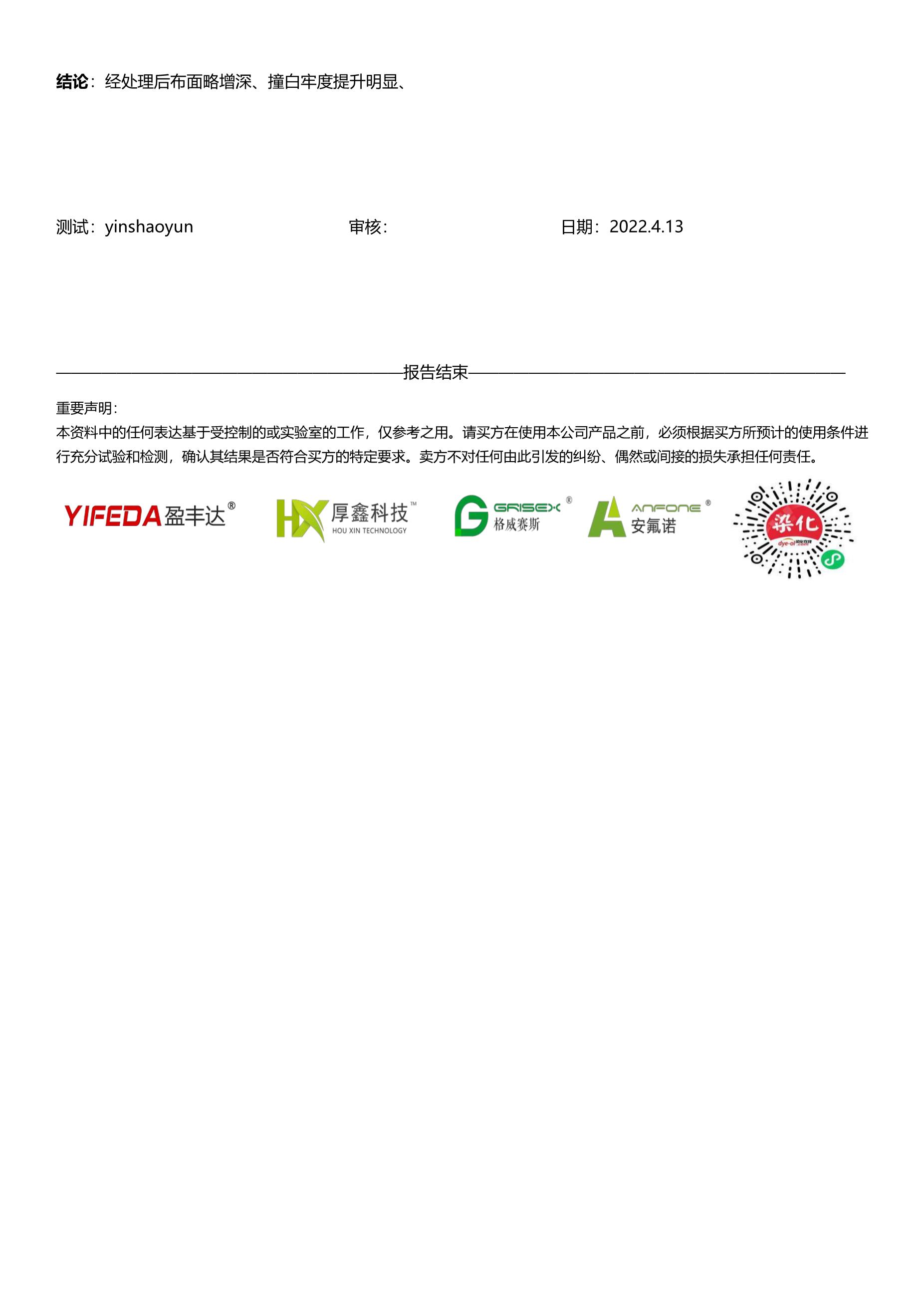 | 测试工艺 | 浸渍、浸轧工艺 |