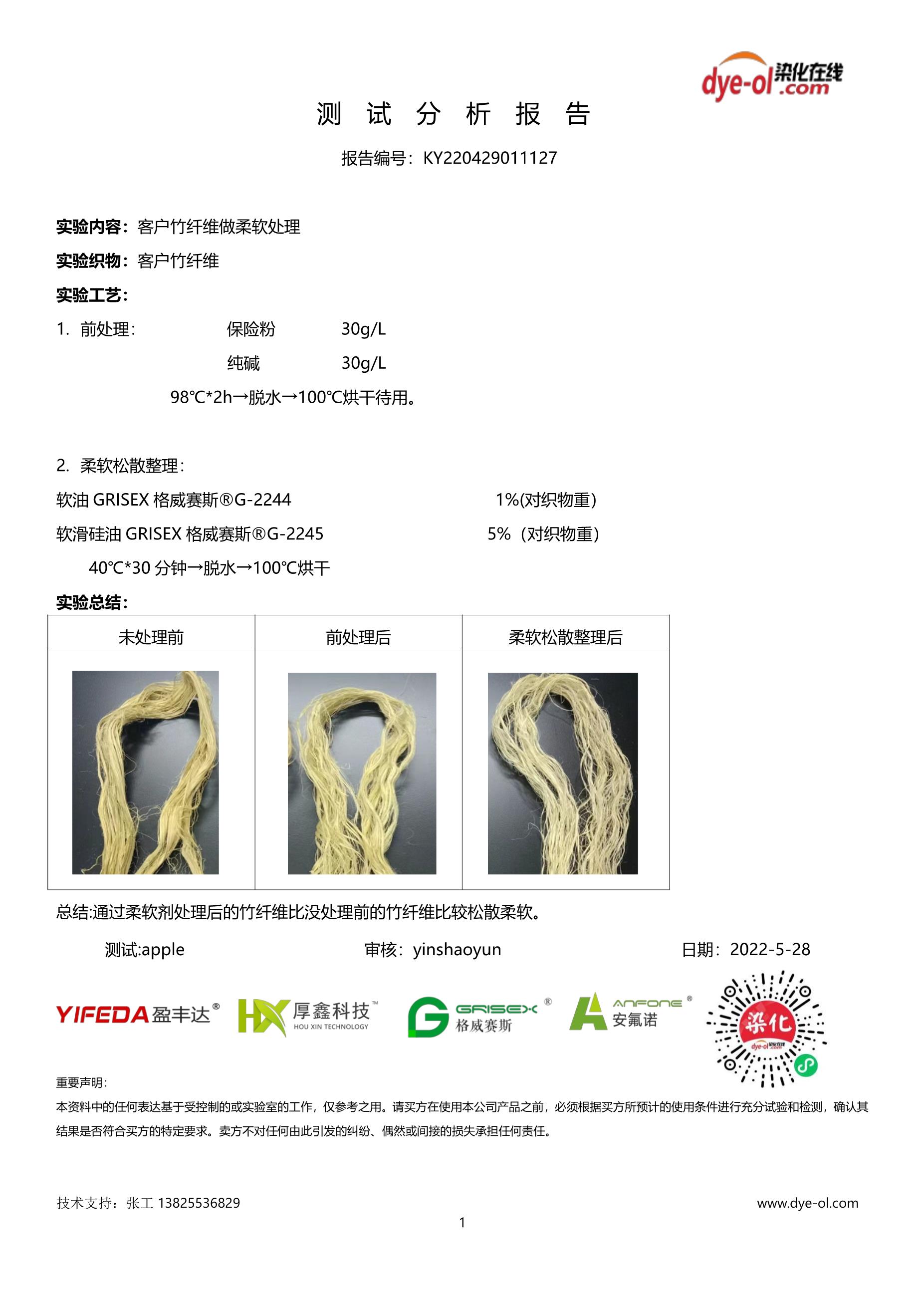 | 测试工艺 | 前处理后浸泡过柔软,烘箱烘干 |