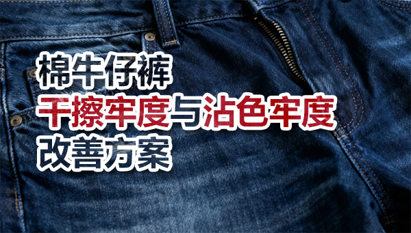 牛仔面料的色牢度一直不好控制,非常容易因各项色牢度测试不过导致交货延期甚至退货。本方案是为解决一客户全棉藏蓝梭织牛仔的干擦和皂洗牢度检测不通过整理而得,供有相似需求的牛仔洗水企业参考。