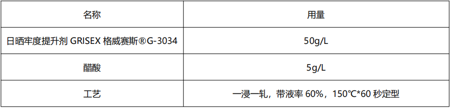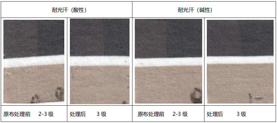 经过处理后的面料颜色及手感有小许影响,光汗牢度能提升 0.5 级,
