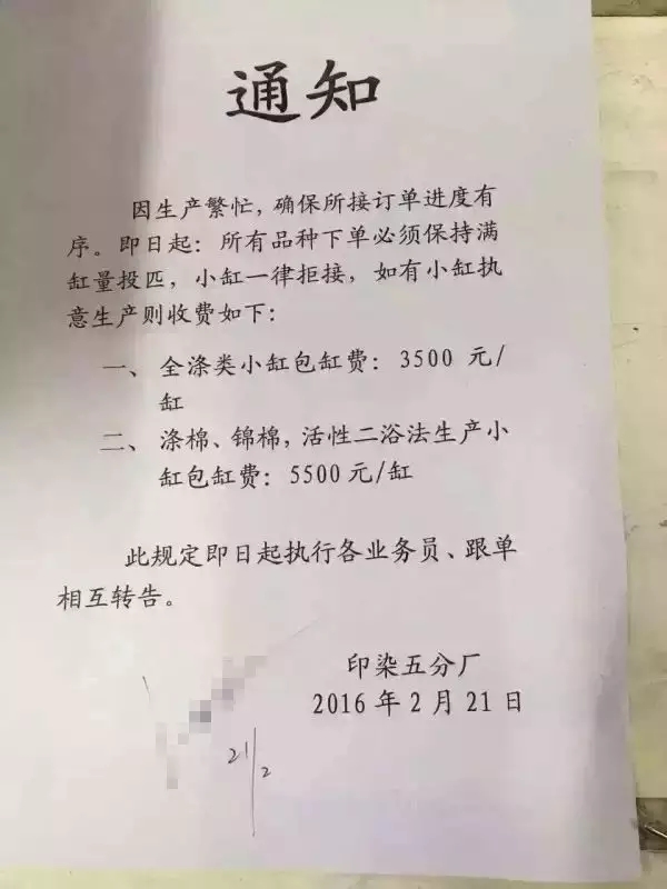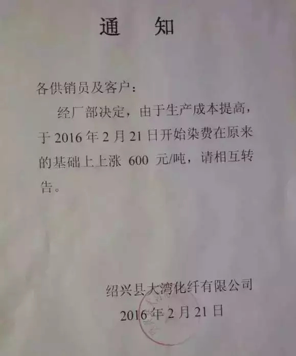 浙江绍兴市未来印染厂集中在滨海工业区,将大大提高产能,提升产品质量。相对设备更新换代,污水处理,蒸汽水电等成本大大提高,染费即将集体上调是不可避免的。