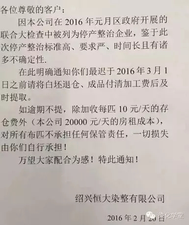 这两天朋友圈一直在疯转一条消息:绍兴74家印染厂关停,染费即将涨价!这则消息引发各纺织品商乃至外贸小伙伴的恐慌。今日,绍兴部分未公开染厂已经稍稍提价,更多动态资讯,染化学堂持续更新。