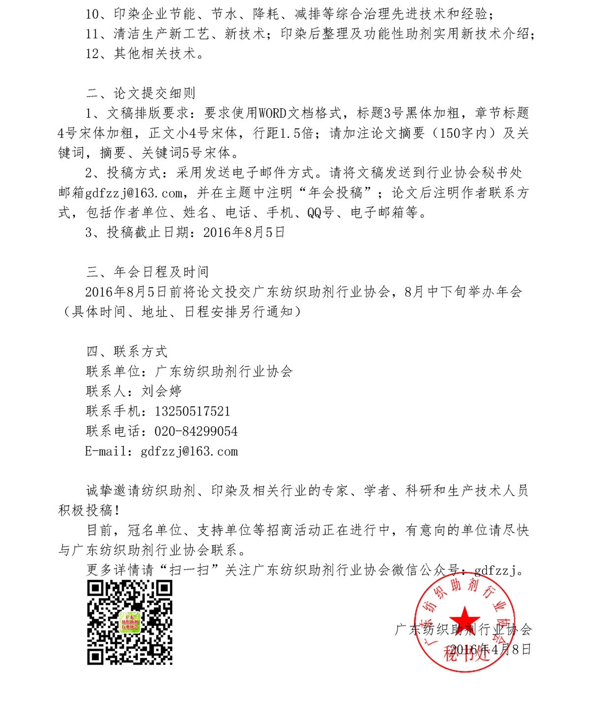第八届广东纺织助剂行业年会论文征集通知