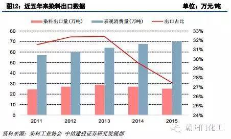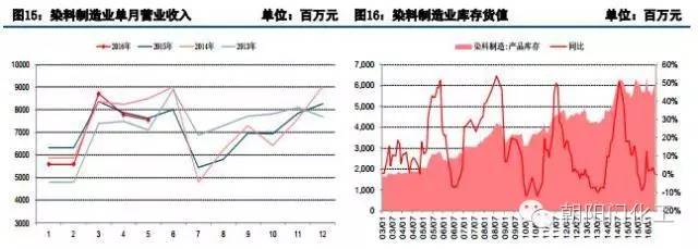 对位酯价格上涨主要是因为环保。湖北楚源是全球第一大对位酯厂家,具有对位酯产能4万吨,湖北楚源的关停带来产能大幅收缩,目前国内对位酯产能八成集中在河南新乡,上半年价格有条不紊的提升,因一则中央巡查组莅临河南的消息迅速弥漫,河南厂家产能受限,供应减少,价格得以继续再创新高。另外,对位酯上游原料环氧乙烷3月份以后暴涨30%。原料面的支撑对位酯价格上涨。间苯二胺:6月26日,环保部环境监察局会同江西省环保局和九江市环保局,对间苯二胺的生产企业之一彭泽县九江常宇化工有限公司进行现场环境突击检查,并对其实行停产整顿处罚。本次常宇停产之后,间苯二胺的生产厂家只剩浙江龙盛一家,因此不排除此后继续涨价的可能。H酸:H酸占染料总成本约20%左右,其生产过程中安全、环保压力大,每生产1吨H酸会产生7吨废水,具有高需氧量、高酸度、高盐度和高色度特性,无法采用传统的生化和物化方法处理。由于环保问题,上半年H酸龙头企业停产整顿,H酸厂家开工率低,供给紧张。目前来看,需求淡季,H酸价格有所回调。活性染料及中间体H酸最大的生产企业湖北楚源因环保问题,其活性染料和中间体生产目前仍在关停中。综合来看,中间体和染料一样,环保问题频出。G20会期逼近,供应或将继续减少,支撑染料价格的上涨。2015年染料出口量为25.3万吨,同比下降6.77%,染料出口量占比为27.44%。2016年1-5月份,染料出口量为11.73万吨,同比增长9.04%,5月份出口量达到了2.99万吨,同比增长24.19%,1-5月份出口数据表明,海外需求回升。分月度来看,染料出口也有明显淡旺季的特点,2、4季度出口要明显好于1、3季度。另外,从出口均价来看,上半年出口均价保持平稳。染料制造业有明显的淡旺季特征,这也与下游印染和纺织服装行业具有季节性有关。从染料制造业单月营业收入来看,春节后3、4月份和下半年的9、10月份是染料行业的旺季,染料行业主营业务收入开始上升,6、7月份是染料行业的淡季,主营业务收入开始下降。从染料制造业库存来看,往往6、7月份也是库存的一个低点,从目前的库存情况来看,当前库存也处在低位。从我们草根调研了解到的情况来看,当前染料企业开工不高,经销商环节库存较低,且都以消化前期库存为主,成交也比较清淡。下半年金九银十需求旺季叠加G20峰会停产影响,我们认为下半年需求有可能提前释放。在印染的成本构成中,染料占印染成本比重低,约10%左右,因此下游印染企业对染料提价的接受能力较强。今年以来,绍兴地区启动对印染产业的重点整顿,加快推动印染产业从中低端向中高端转型,因此大量中小印染企业的停产,导致市场需求格局发生变化,印染订单向大型企业集中,使得大型企业开始满负荷运转。下半年9、10月份是印染行业的传统旺季,纺织服装、服饰业的库存也并不高,我们认为需求会在G20峰会带来企业停产前后集中释放。目前行业淡季,经销商库存低,G20峰会叠加金九银十传统旺季,我们认为在G20峰会停产前后的时间窗口,染料需求有望集中爆发。综合来看,环保再次趋严+旺季来临,染料有望迎来新一轮景气行情,重点推荐闰土股份、安诺其、浙江龙盛,同时推荐印染龙头航民股份。