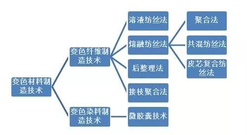 在纺织品领域,变色材料的制造技术主要包括变色纤维和变色染料两部分: