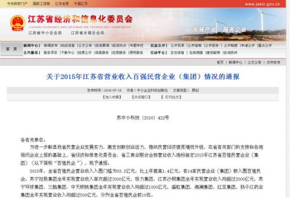 链接:2015年江苏省营业收入百强民营企业(集团)名单(化纤企业部分)