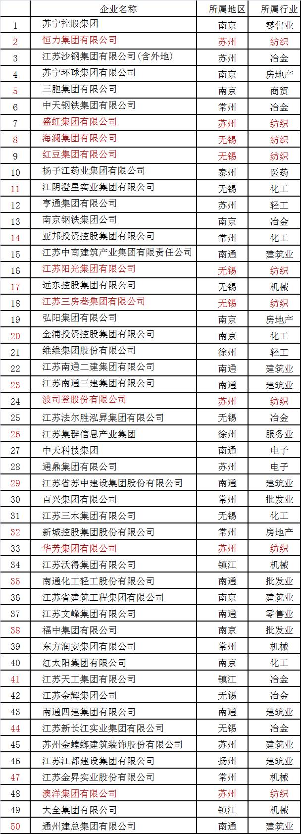 近日,江苏省经信委、省工商联发布2015年度全省百强民企榜单,苏宁控股集团、恒力集团、沙钢集团位列前三甲,12家纺织企业入围,其中4家为化纤企业。