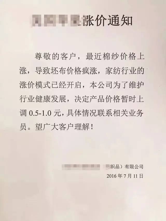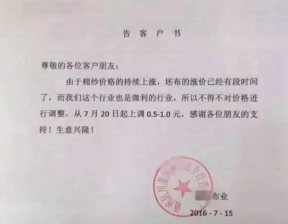 受上游棉花价格的不断高涨,下游棉纱、坯布也随之跟进,布行也不再淡定,纷纷通知涨价。对于这轮风潮,你怎么看,亲?