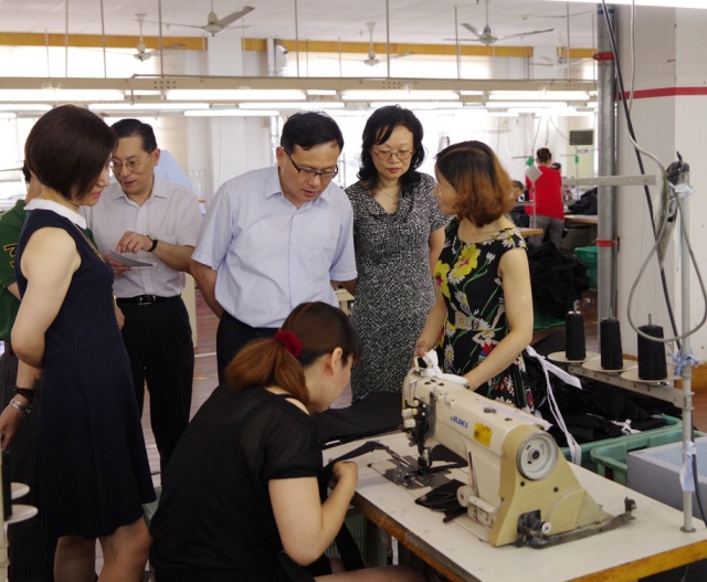 7月21日,上海纺织集团党委书记、董事长童继生率总工程师、副总裁封亚培,董事会秘书长肖卫国一行,在新联纺进出口公司总经理黄勤等陪同下,冒着高温酷暑,赴江苏吴江考察集团外贸加工基地。苏州美好挺服饰有限责任公司是一家衬衫专业生产企业,与新联纺有着长期合作历史,近年来,每年承接新联纺公司300万件套中高端出口服装加工订单。童继生一行仔细参观了服装加工流水线的各个作业环节,考察了在线生产的H&M衬衫的质量,认为该加工基地较具规模且有较高业务和技术素质,对发展有实体依托,贸科工结合的自营外贸表示肯定。集团领导与苏州美好挺服饰公司董事长张国荣等就进一步加强合作,发展混合经济,做大自营外贸加工基地进行了探讨。在新联纺面料加工基地、盛氏集团祥盛纺织染整厂,童继生一行深入40多度高温的生产现场,考察印染加工生产线。童继生一行还参观了宜布网线下专业实样体验展厅和线上交易平台演示,与盛世集团董事局主席盛后泉及所属电子商务团队探讨了优势互补,共同发展互联网+电商贸易平台的合作意向。