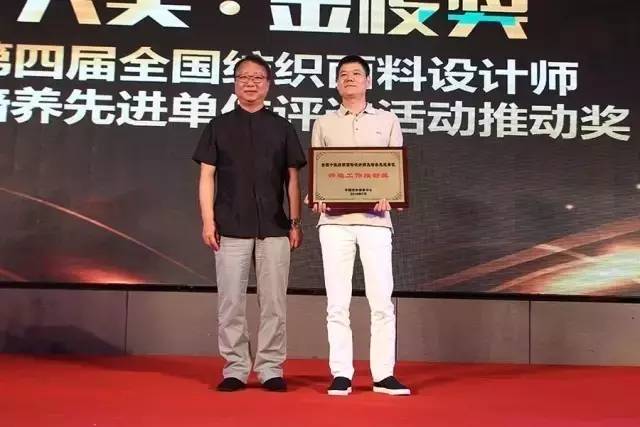 鉴于在推动纺织服装企业做好人才培养工作方面做出的突出业绩和突出贡献,组委会特授予江阴兴吴呢绒科技有限公司评选活动推动奖。中国纺织工业联合会副会长孙瑞哲在会上为江阴兴吴呢绒科技有限公司董事长吴栋标进行了颁奖。