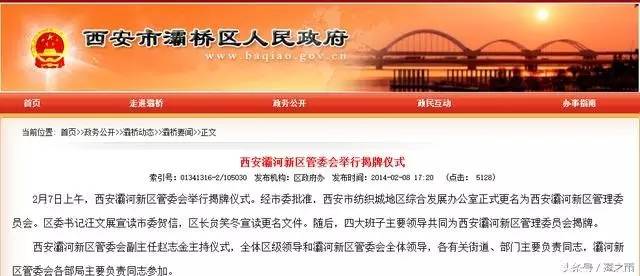 2014年,西安灞河新区管委会举行揭牌仪式。经市委批准,西安市纺织城地区综合发展办公室正式更名为西安灞河新区管理委员会。