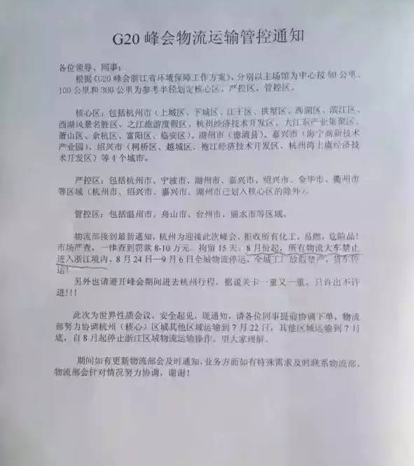 8月24日―9月6日杭州全城物流停运,全城工厂放假禁产,货车停运!假如你没有囤点原材料,如何难熬请自行脑补。