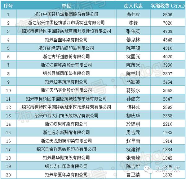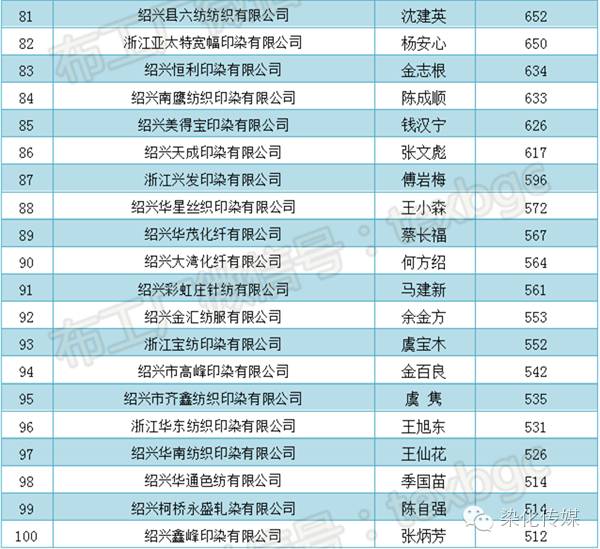柯桥区2016年1-6月实缴税前100位纺织印染企业排行榜