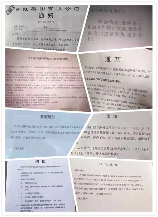 “这次突然接到通知,停了一个星期,也是我们意想不到的,原本以为只是限产,谁知道G20为我们换了个小长假。我们是昨晚开始上班,已经忙到现在了!”吴江立新染整有限公司的工作人员说道。