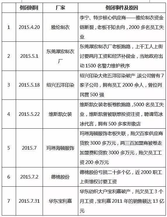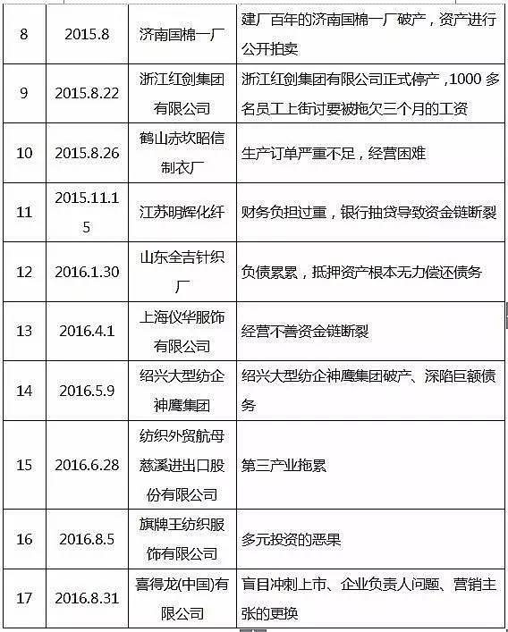 其实,诺奇和庄吉只是内地纺织服装业的一个缩影,从去年以来,纺织服装业迎来了一阵“倒闭潮”。