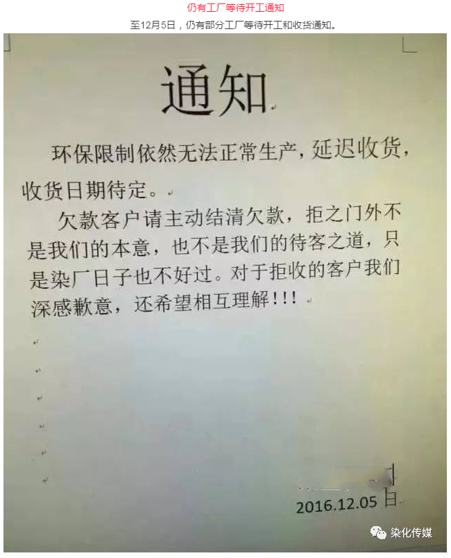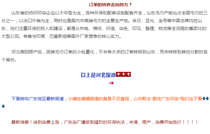染化传媒报道完毕,小编的心情是复杂的,粗算近几日受环保高姿态严厉的执法,停产、关停、限产,涉及的广东印染企业有96家,这个数字是只有少没有多,目前为止这个数字还在增加,接下来还会出现什么变动,候等小编下次最新报道。