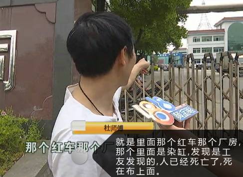 杜师傅:就是里面那个红车那个厂房,那个里面是染缸,发现是工友发现的,人已经死亡了。