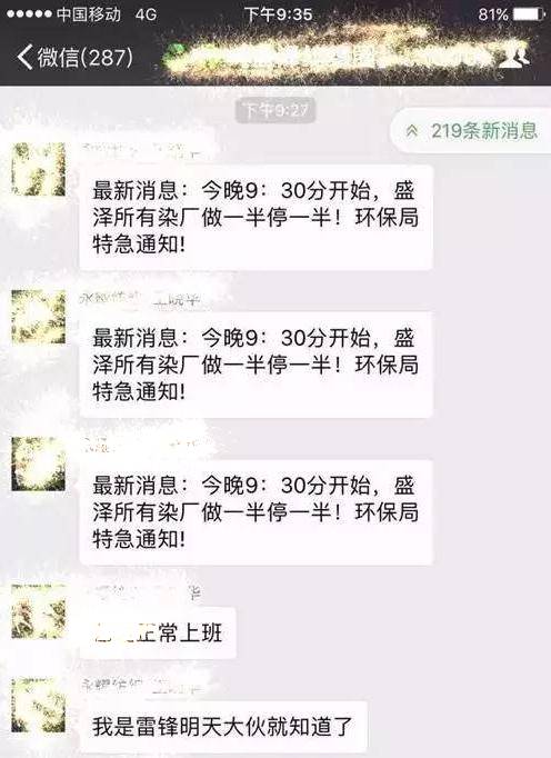 15号晚9:30开始,盛泽所有染厂开一半停一半”