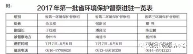 为严格落实环境保护责任,更大力度推进全省生态文明建设和环境保护工作,经省委、省政府批准,我省组建了3个环境保护督察组,组长分别由佘义和、张新民、夏鸣同志担任,副组长由省环保厅于红霞、潘良宝、陈志鹏同志担任,分别负责对徐州、南通和扬州市开展环境保护督察工作。截至7月7日,3个省环境保护督察组已全部完成督察进驻。