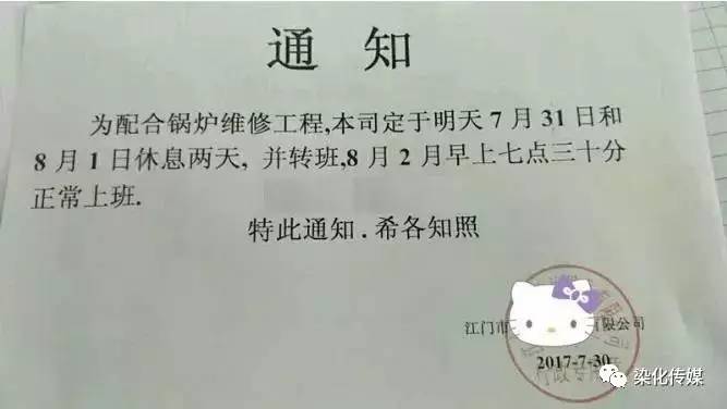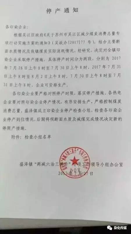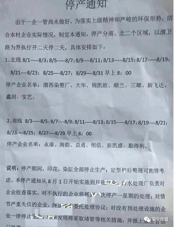 为履行上级精力和严峻的环保局势,结合本村实际情况,实施停产通知,为期一个月,自8月初至月底。