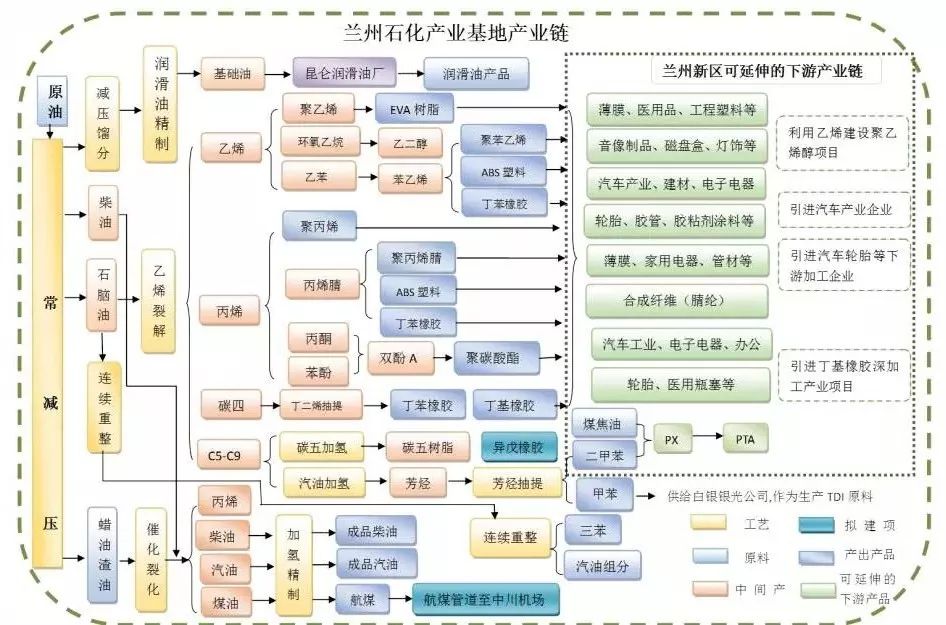 2.兰州新区石化产业园。依托兰州、白银地区石化产业优势,规划发展石油化工产品深加工和精细化工。大力发展高档车用密封件、胶辊、胶管、胶带,适度发展车用特种橡胶,为兰州广通新能源客车、知豆电动汽车等项目提供配套。积极引进战略投资方,发展100万吨/年PX和150万吨/年PTA项目,打造清洁低碳石化能源系列和乙烯、丙烯、芳烃及深加工系列、副产碳Ⅳ/碳Ⅴ综合利用系列产业链的龙头企业。以科天水性集团为龙头,着力打造水性涂料、水性合成革及环保家装新材料产业基地, 2020年水性涂料年产能力争达到25万吨/以上。