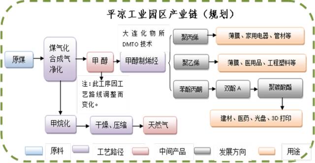 1.平凉工业园区。以平凉华泓汇金公司和陇能公司为龙头,加快推进70万吨/年烯烃生产线国家示范项目和平凉煤炭深加工循环利用660万吨煤基新燃料项目,延伸煤制烯烃、煤制燃料、煤制精细化学品等产业链。