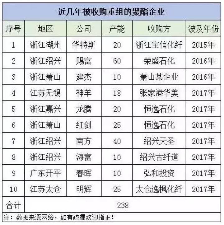 今年以来,聚酯市场可谓风云变幻。龙腾、红剑、明辉、海富、南方等数套聚酯装置易主,而接盘者多为聚酯行业内龙头企业。恒逸集团在去年年底收购龙腾化纤后,今年3月再度出手把红剑也拍入囊中。