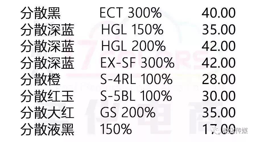 同时,值得一提的是,2017年七八月份,同样是环保问题,曾经造成染料经过一轮暴涨,当时分散染料价格一个月里就暴涨超过50%,各位看官留心了!