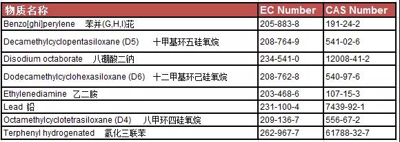 另外两种物质TMA和DCHP也被加入了该名单,由于它们的呼吸敏感特性和对生殖和内分泌干扰的毒性,欧洲委员会将其列为SVHCs。截止目前,SVHC清单正式增加至191项。