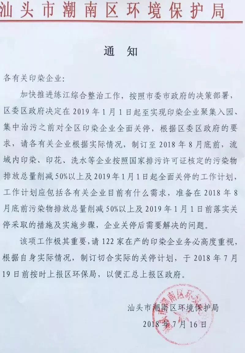 潮南122家印染企业陆续关停