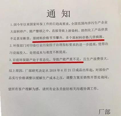 环保部近日通报,对无法升级改造达标排放的企业,今年9月底前一律关闭。国务院安监总局也宣布7-10月开展安全生产大检查,中国34个省市自治区的印染企业均将“被检查”,无一能幸免!此时环保部、安监总局再次大打出手零容忍展开治理工作,业内人士表示2017开年致使的涨价因素不止原材料价格暴涨及涨价潮,其实有十几种因素,目前多个印染、化工产业园被关停整治!有专家表示今年下半年将是印染行业洗牌最残酷的半年,印染行业不止是连续多轮涨价,而是有钱也未必能及时染到布!